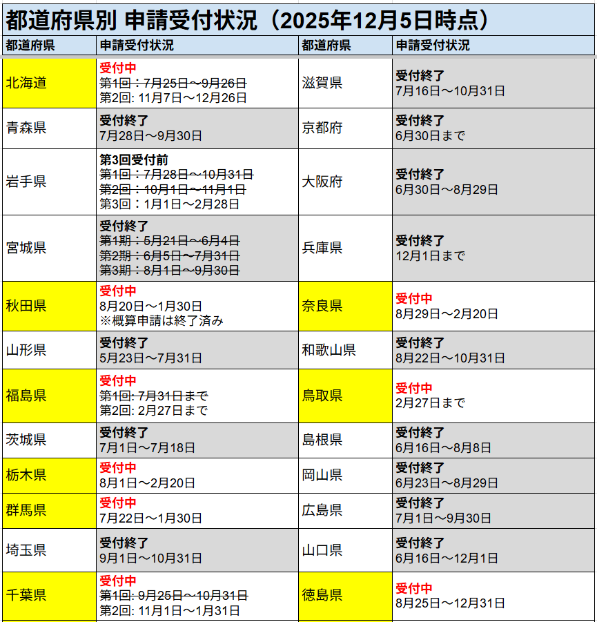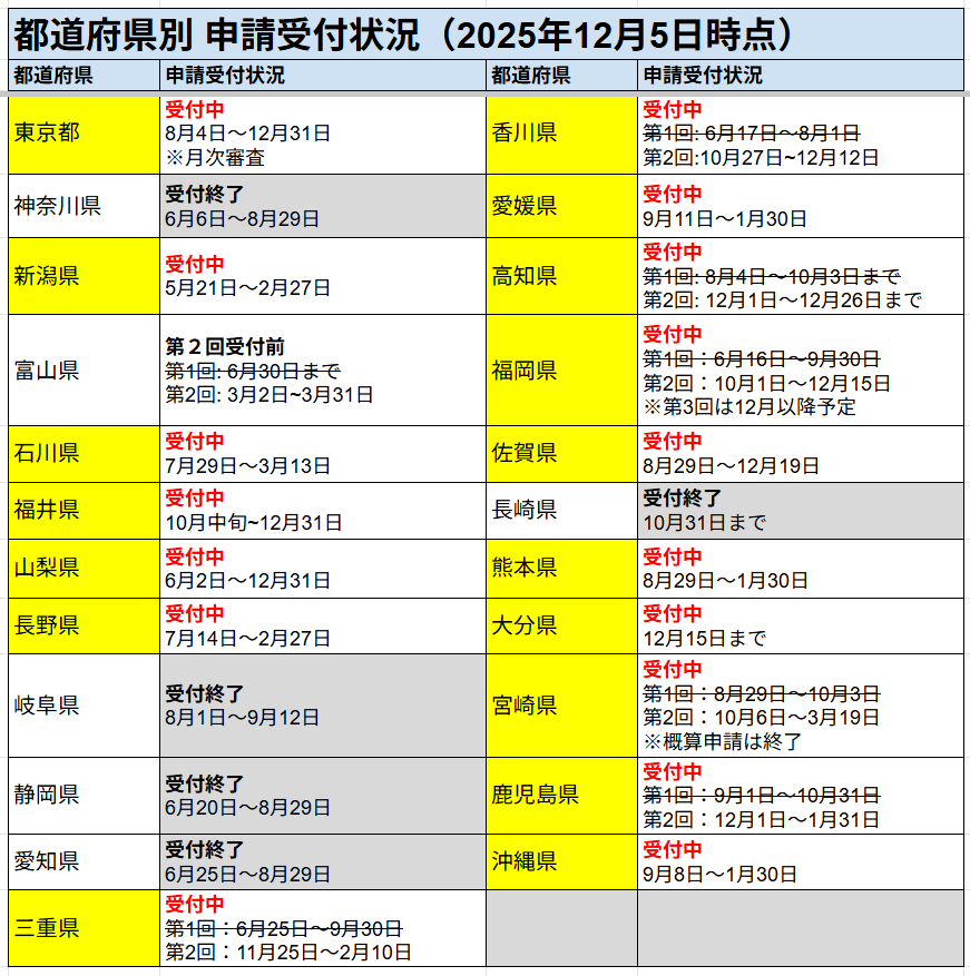 ※当サイトでは、今後も都道府県ごとの申請受付情報を随時更新してまいります。
